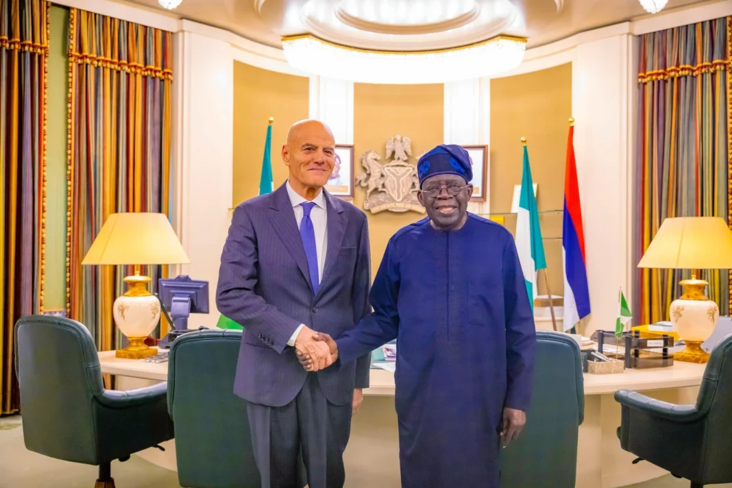 President Bola Tinubu has announced successful conclusion of a historic settlement agreement between the Federal Government of Nigeria, ENI, and Nigerian Agip Exploration Limited (NAEL) at a meeting in his office attended by the Chief Executive Officer of Eni, Claudio Descalzi, Chief Operating Officer of Eni Guido Brusco, Head of Sub-Saharan Region, Mario Bello, Managing Director of Nigerian Agip Exploration, Fabrizio Bolondi and Special Adviser to the President on Energy, Olu Verheijen.